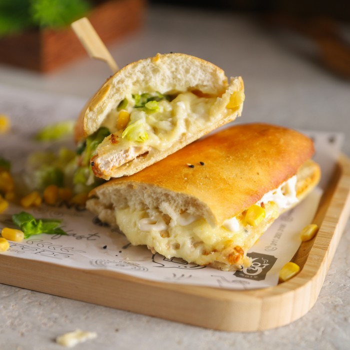 (551 سعرة حرارية)صدر دجاج متبل / جبنة موزاريلا و بارميزان / خس / ذرة / صويا صوص / مايونيز